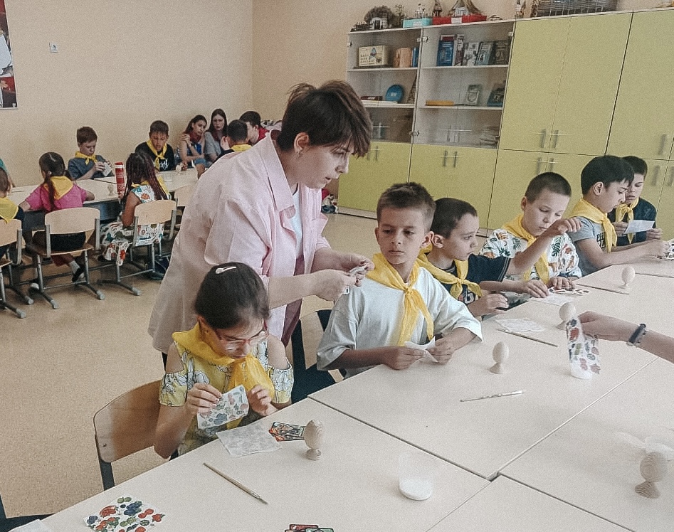 Для ребят был организован творческий мастер-класс по декупажу, в ходе которого школьники познакомились с техникой украшения предметов с помощью декоративных салфеток. Каждый участник смог создать собственное небольшое изделие, а заодно узнать, как эта техника перекликается с народным декоративно-прикладным искусством.