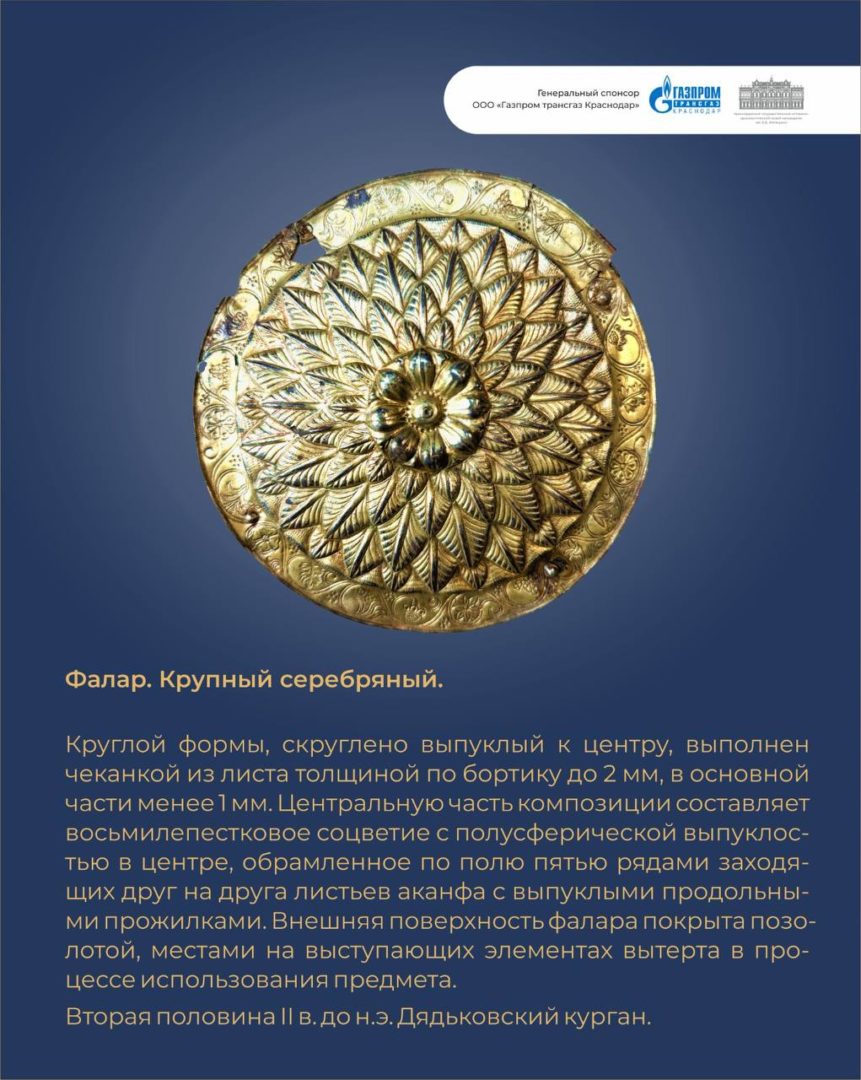 В рамках выставки, которая начнет свою работу уже этой осенью, будут представлен серебряный фалар второй половины II в. до н.э.