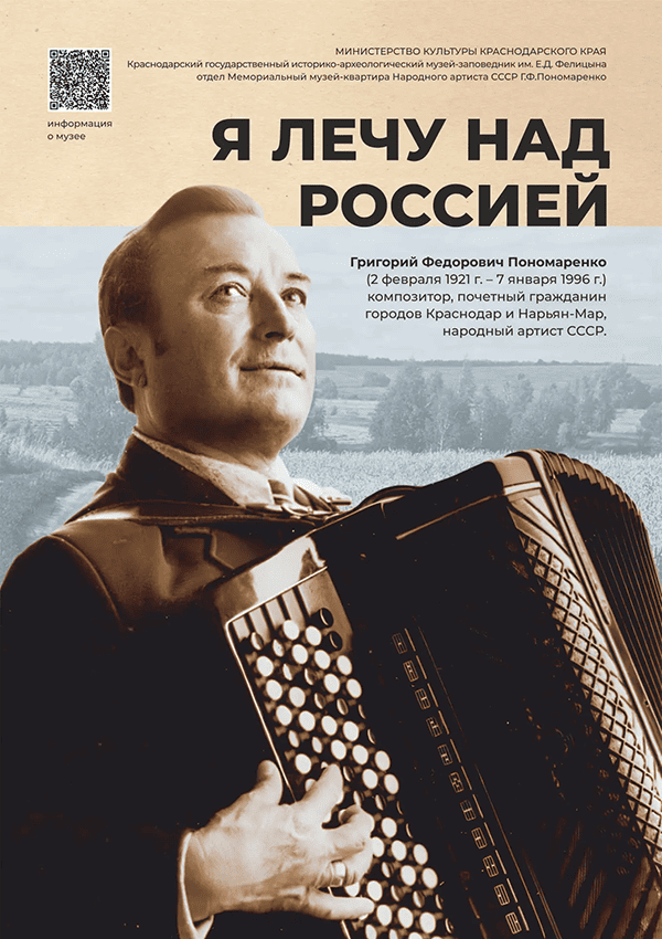Выставка приурочена к 105-летию со дня рождения композитора Григория Фёдоровича Пономаренко и Году единства народов России, провозглашённому Президентом РФ. В этом контексте обращение к наследию Пономаренко становится глубоко осмысленным, его музыка выступает подлинным культурным мостом, связывающим поколения и объединяющим народы нашей страны, а также сохраняющим общенациональную память через песенное творчество.