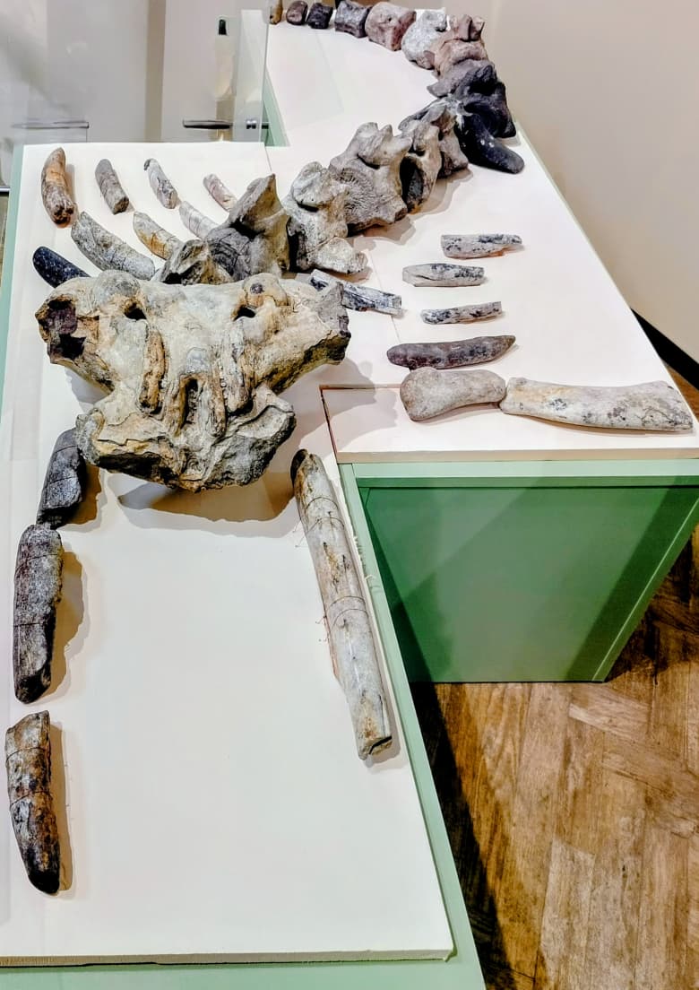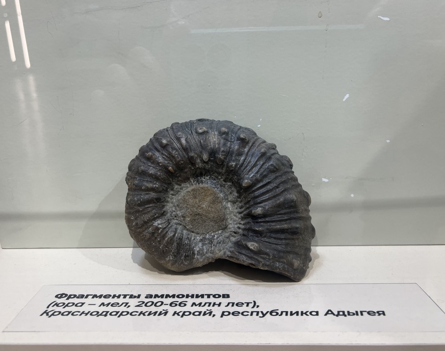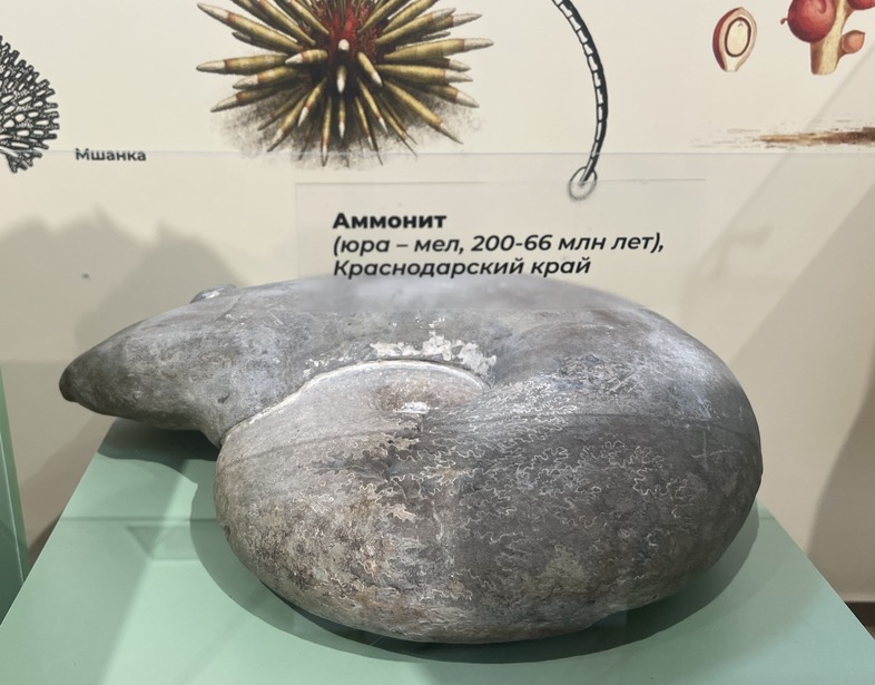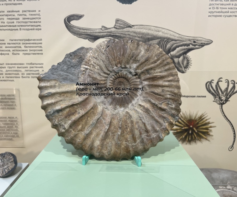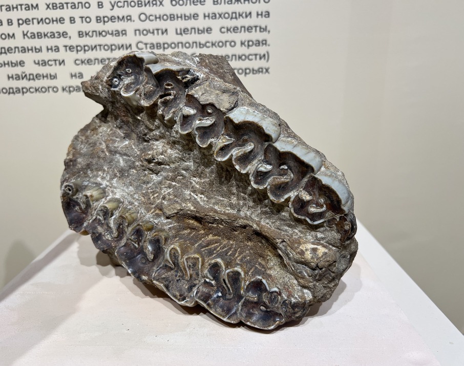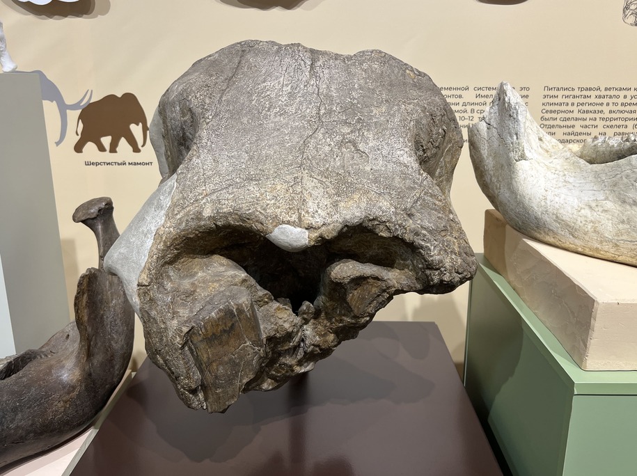 Среди экспонатов выставки есть как самые старые предметы из палеонтологической и геологической коллекции музея, так и новые поступления. Это уже известный уже многим череп фанагорийского слона, фрагменты скелета мамонта, мастодонта, кита-цетотерия, разнообразные аммониты и другие морские беспозвоночные. Широко представлены также различные минералы, характерные для региона и поступившие в фонды музея в последние несколько лет.